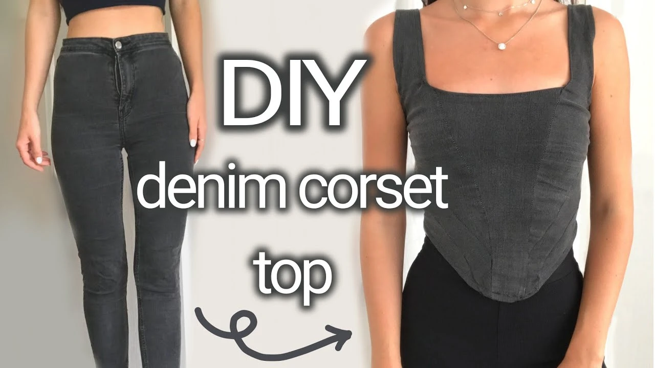 DIY denim corset top - JEANS upcycle - how to turn jeans into a top
